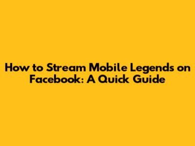 How To Stream Mobile Legends On Facebook: A Quick Guide