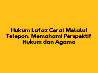 Dalam agama Islam, cerai adalah keputusan yang serius dan sakral. Lafaz cerai adalah kata-kata yang diucapkan oleh suami kepada istrinya yang mengindikasikan berakhirnya ikatan pernikahan. Lafaz cerai yang diucapkan melalui telepon juga menjadi perdebatan di kalangan ulama. Apakah lafaz tersebut sah secara hukum Islam?
