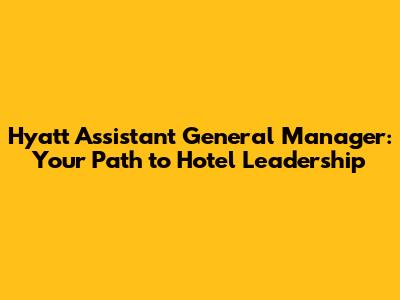 Hyatt Assistant General Manager: A Comprehensive Guide