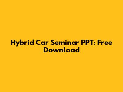 Hybrid Car Seminar PPT: Free Download