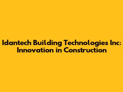 Idantech Building Technologies Inc: Innovation In Construction