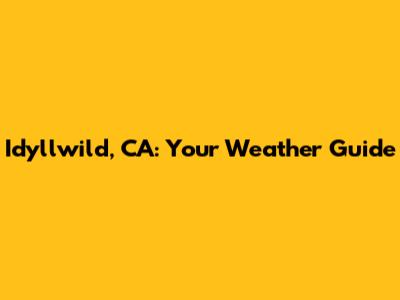 Idyllwild, CA: Your Weather Guide