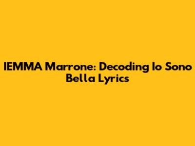 IEMMA Marrone: Decoding 'Io Sono Bella' Lyrics