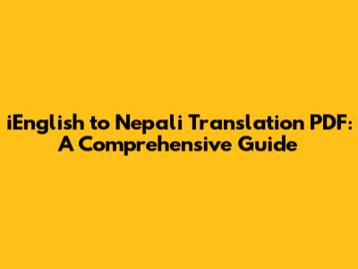 IEnglish To Nepali Translation PDF: A Comprehensive Guide
