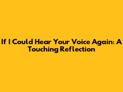 If I Could Hear Your Voice Again: A Touching Reflection
