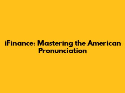 IFinance: Mastering The American Pronunciation