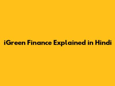 IGreen Finance Explained In Hindi