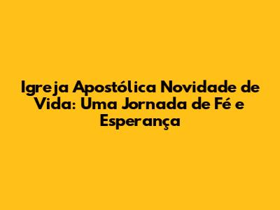 Igreja Apostólica Novidade De Vida: Uma Jornada De Fé E Esperança