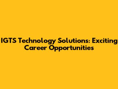 IGTS Technology Solutions: Exciting Career Opportunities