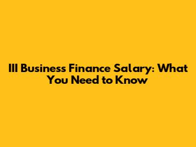 III Business Finance Salary: What You Need To Know