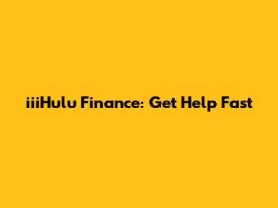IiiHulu Finance: Get Help Fast