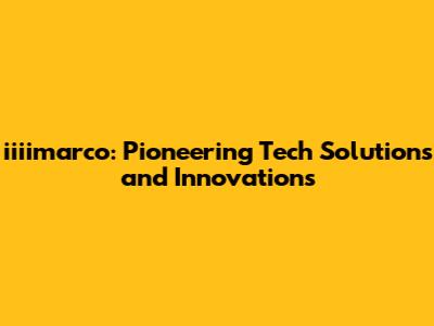 Iiiimarco: Tech Solutions & Innovations