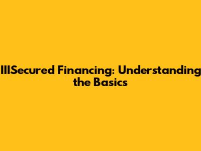 IIISecured Financing: Understanding The Basics