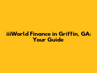 IiiWorld Finance In Griffin, GA: Your Guide
