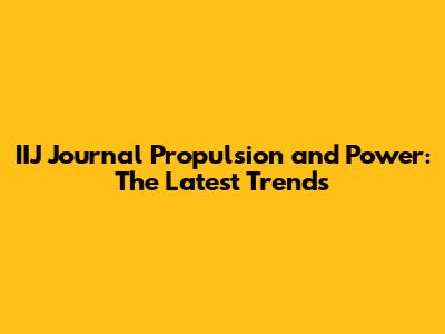 IIJ Journal Propulsion And Power: The Latest Trends