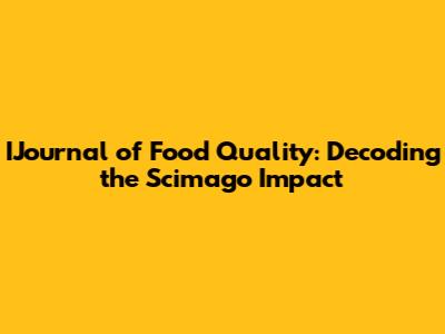 IJournal Of Food Quality: Decoding The Scimago Impact
