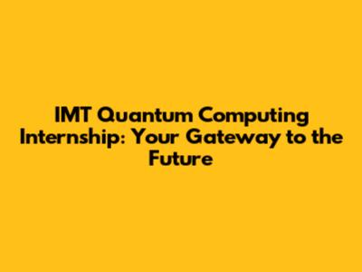 IMT Quantum Computing Internship: Your Gateway To The Future