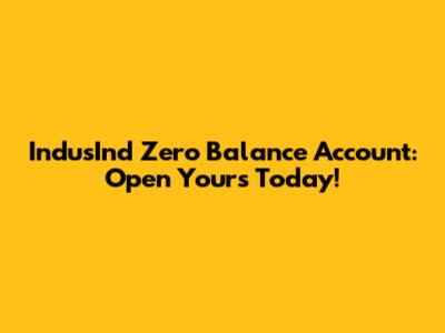 IndusInd Zero Balance Account: Open Yours Today!