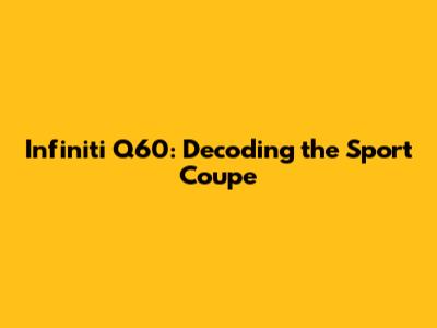 Hey guys! Ever wondered about the Infiniti Q60 Sport Coupe? Well, buckle up because we're diving deep into this sleek, performance-driven machine. We'll explore everything from its engine specs to common repair issues and everything in between. This isn't just a car; it's a statement. A statement of style, power, and a touch of luxury. The Q60 has been turning heads since its debut, and for good reason. It's the kind of car that makes you feel good just sitting in it, let alone driving it. So, whether you're a seasoned car enthusiast or just curious about what makes this coupe tick, you're in the right place. We'll be breaking down all the key aspects of the Infiniti Q60, so you can get a complete picture of what it offers. From its origins to its current iterations, this is your ultimate guide to the Infiniti Q60. We'll talk about its design, its performance, its technology, and, of course, what you might need to know if something goes wrong. Get ready to learn everything you've ever wanted to know about this amazing car!