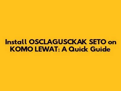 Install OSCLAGUSCKAK SETO On KOMO LEWAT: A Quick Guide