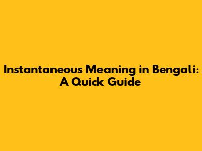 Instantaneous Meaning In Bengali: A Quick Guide