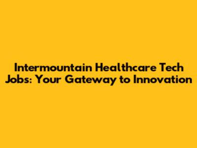 Intermountain Healthcare Tech Jobs: Your Gateway To Innovation