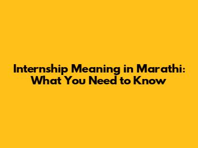 Internship Meaning In Marathi: What You Need To Know