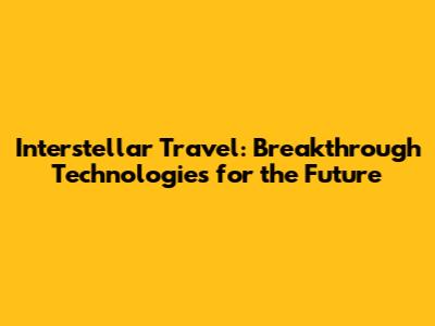 Interstellar Travel: Breakthrough Technologies For The Future