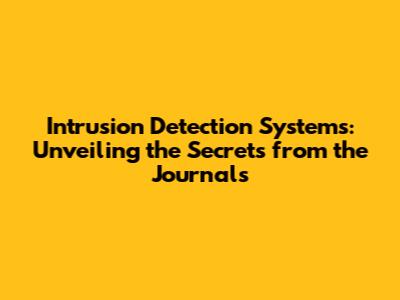 Intrusion Detection Systems: A Deep Dive Into Journal Insights