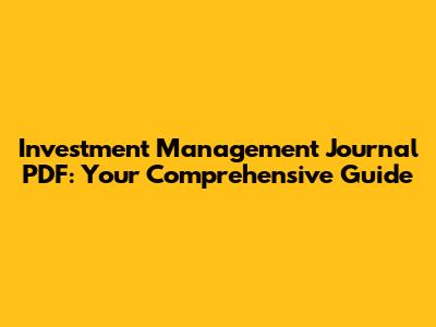 Investment Management Journal PDF: Your Comprehensive Guide