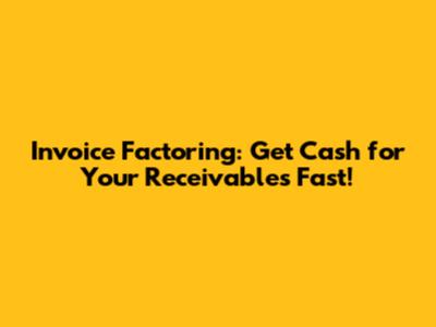 Invoice Factoring: Get Cash For Your Receivables Fast!