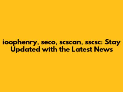 Ioophenry, Seco, Scscan, Sscsc: Latest News And Updates