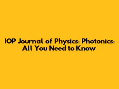IOP Journal Of Physics: Photonics: All You Need To Know