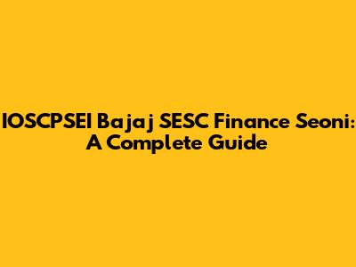 IOSCPSEI Bajaj SESC Finance Seoni: A Complete Guide