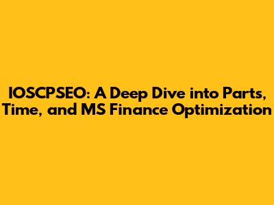 IOSCPSEO: Optimizing Parts, Time, & MS Finance