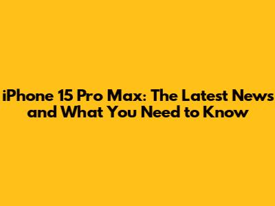 IPhone 15 Pro Max: News, Rumors, And What To Expect