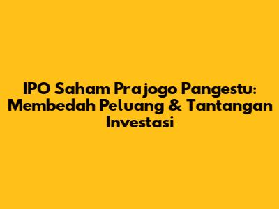 IPO Saham Prajogo Pangestu: Peluang & Tantangan Investasi