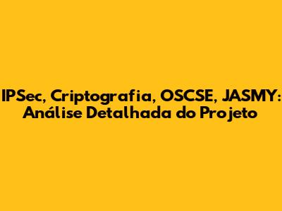 IPSec, Criptografia, OSCSE, JASMY: Análise Do Projeto