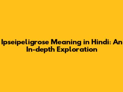 Ipseipeligrose Meaning In Hindi: Unraveling The Mystery
