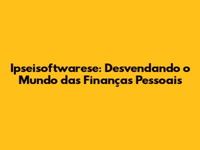 Ipseisoftwarese: Seu Guia Completo Para Finanças Pessoais