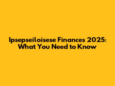 Ipsepseiloisese Finances 2025: What You Need To Know
