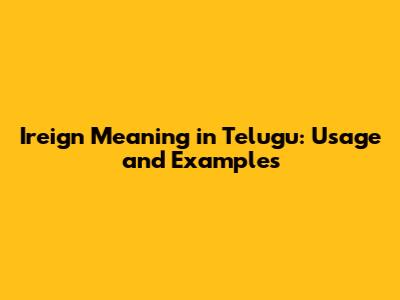 Ireign Meaning In Telugu: Usage And Examples