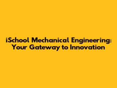 ISchool Mechanical Engineering: Your Gateway To Innovation