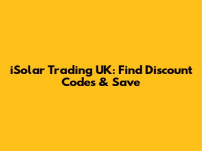 Are you looking to save money on your next purchase from iSolar Trading UK? You've come to the right place! In this article, we'll dive deep into the world of iSolar Trading UK discount codes, helping you find the best deals and maximize your savings. Whether you're a seasoned iSolar Trading UK customer or a newbie, this guide will equip you with the knowledge to snag those coveted discounts. So, let's get started, guys, and unlock some serious savings!