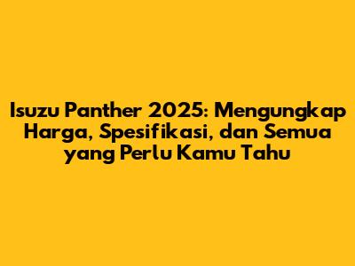 Isuzu Panther selalu menjadi pilihan menarik bagi mereka yang mencari kendaraan tangguh dan serbaguna. All New Isuzu Panther 2025 diharapkan dapat melanjutkan tradisi keunggulan tersebut dengan desain yang lebih modern, fitur yang lebih lengkap, dan performa yang lebih baik. Tetap pantau informasi terbaru dari sumber resmi untuk mendapatkan update yang paling akurat mengenai harga All New Isuzu Panther 2025 dan spesifikasi lainnya.