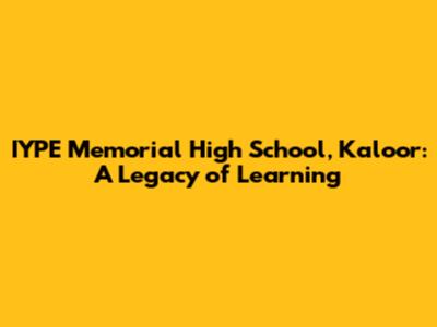 IYPE Memorial High School, Kaloor: A Legacy Of Learning