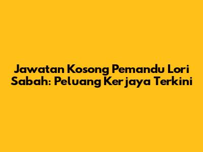 Jawatan Kosong Pemandu Lori Sabah: Peluang Kerjaya Terkini