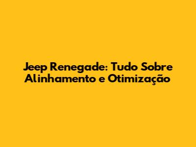 Jeep Renegade: Tudo Sobre Alinhamento E Otimização