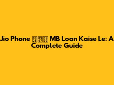 Jio Phone में MB Loan Kaise Le: A Complete Guide