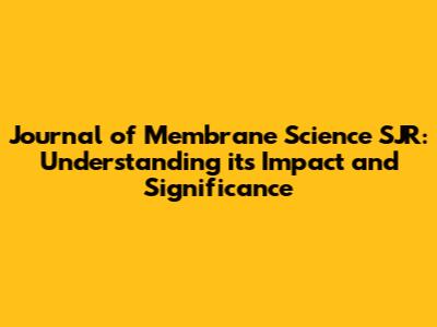 Journal Of Membrane Science: Understanding Its SJR Impact